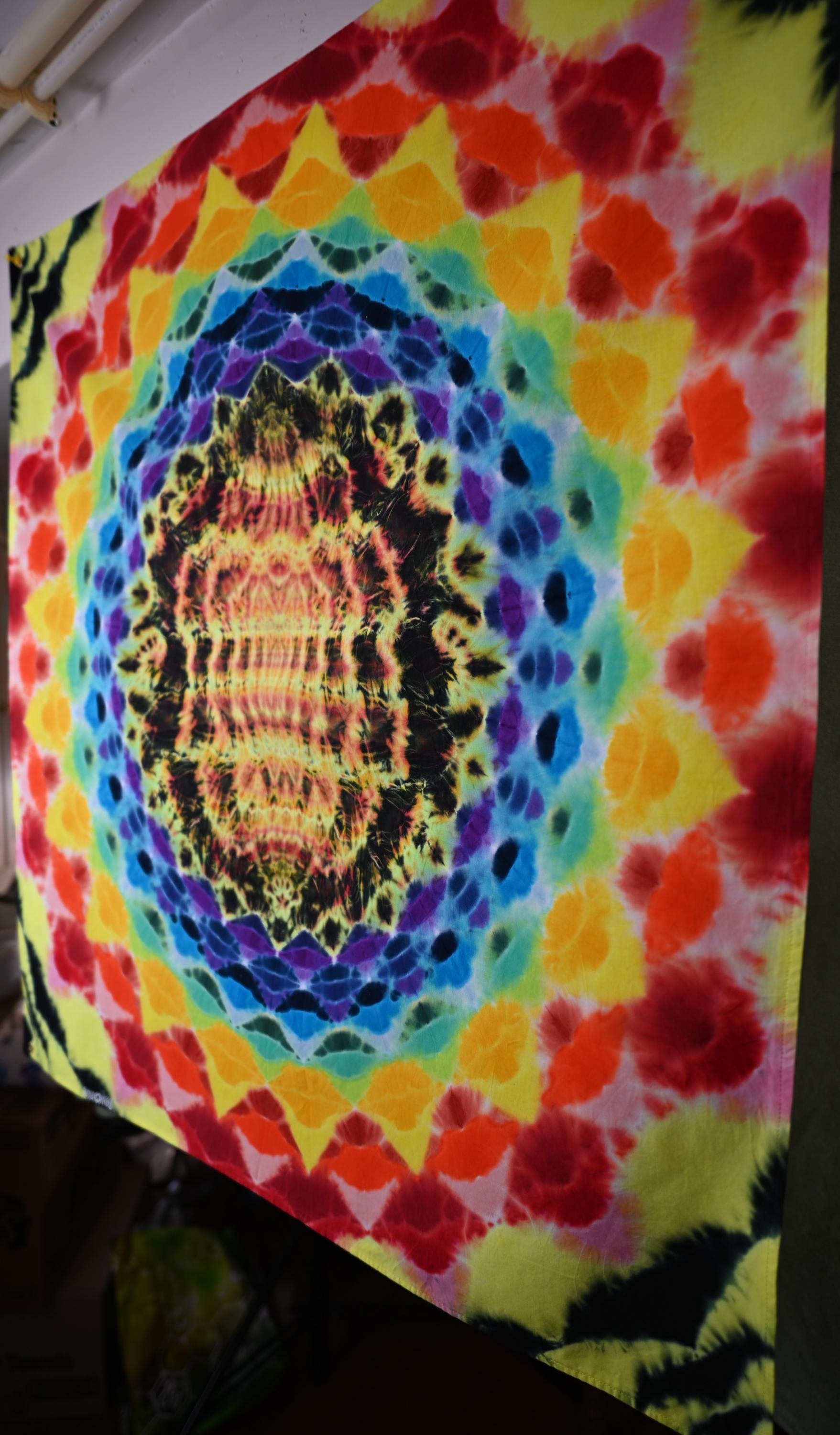 33.5X35" UV Reactive 20Pt Mandala/Cosmic Egg Cntr Tie Dye on a Tapestry* made by Hemming around Robert Kaufman Kona Cotton Read Description