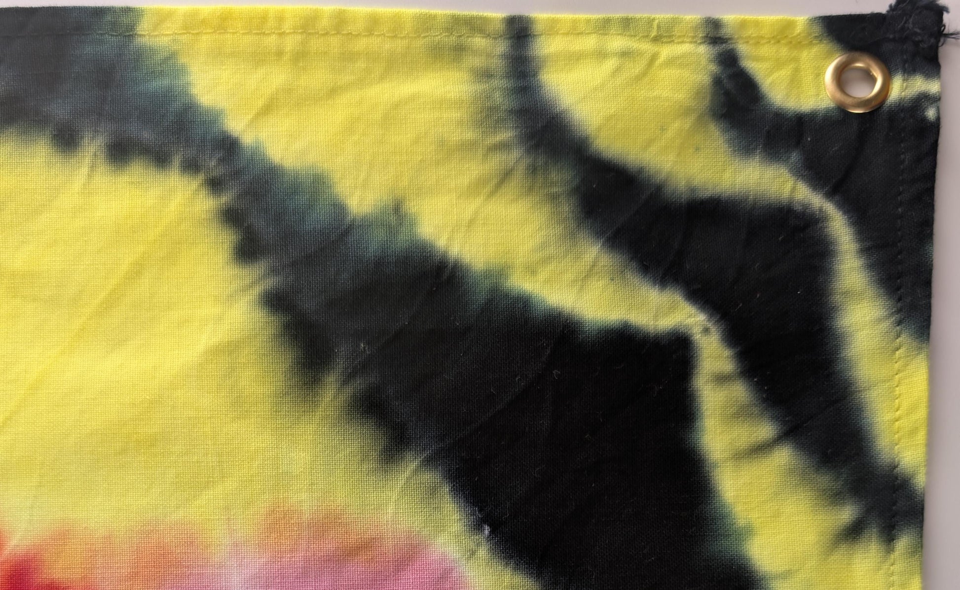 *This is part of my experiment to find the best fabric for tapestries after way too much frustration with the pre-made cotton tapestries currently available. This is the 2nd piece of this particular fabric I used. This one took the dye ok for this particular design... Stay tuned for some different fabrics in the future.