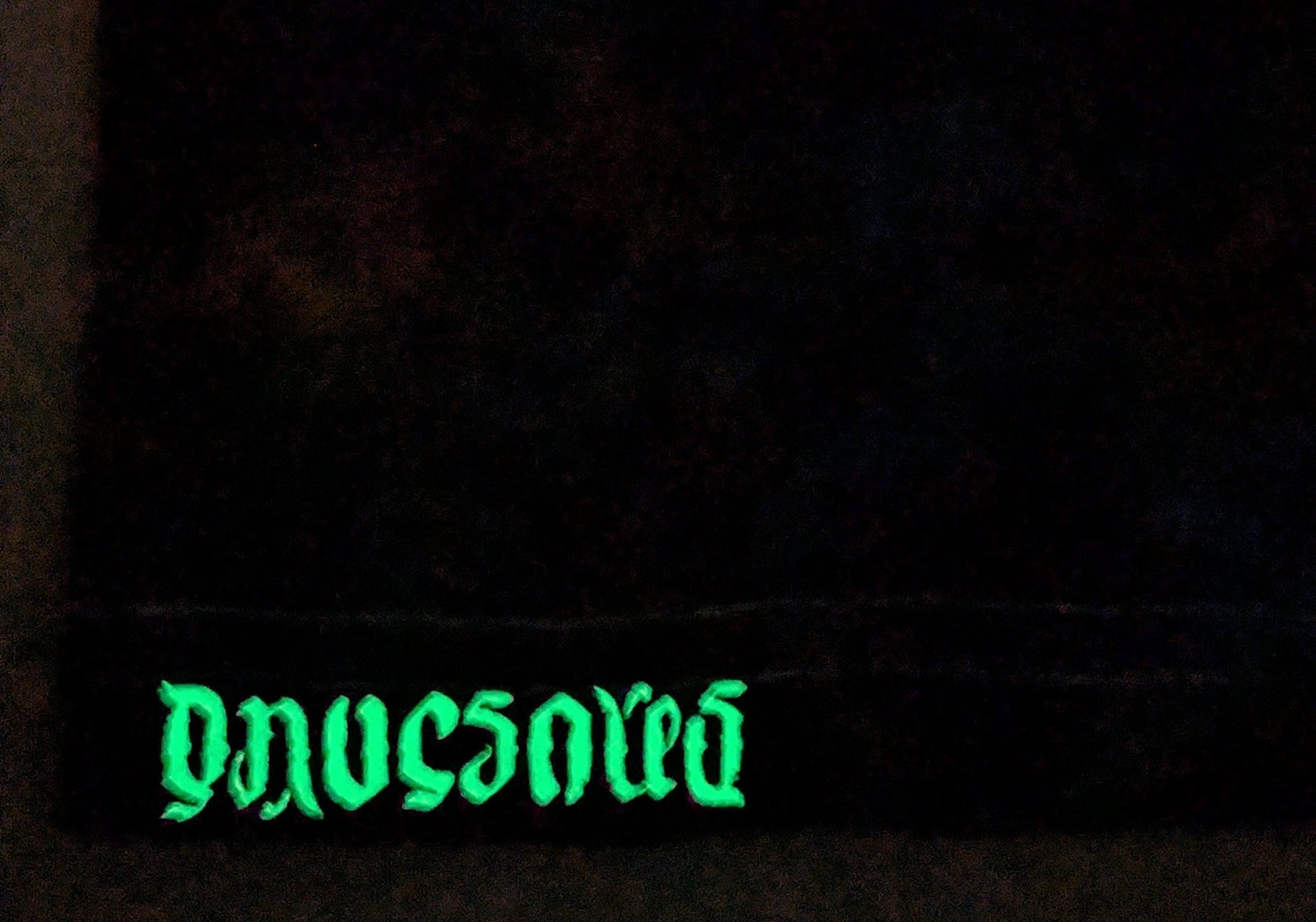 Large Scrunch "Crystal Wash" Low Water Immersion Tie Dye on a Tultex 291 Ringspun Cotton Long Sleeve Shirt. Liquid dye was applied to the shirt without soaking in soda ash and sat for two hours. I then dumped in warm soda ash water to cover and allowed to soak another two hours before rinsing and washing. This one has a glow in the dark HTV Dave's Dyes ambigram logo ironed on to the bottom hem. Feel free to ask me any questions you may have. Wash with like colors in cold water for first few washes.