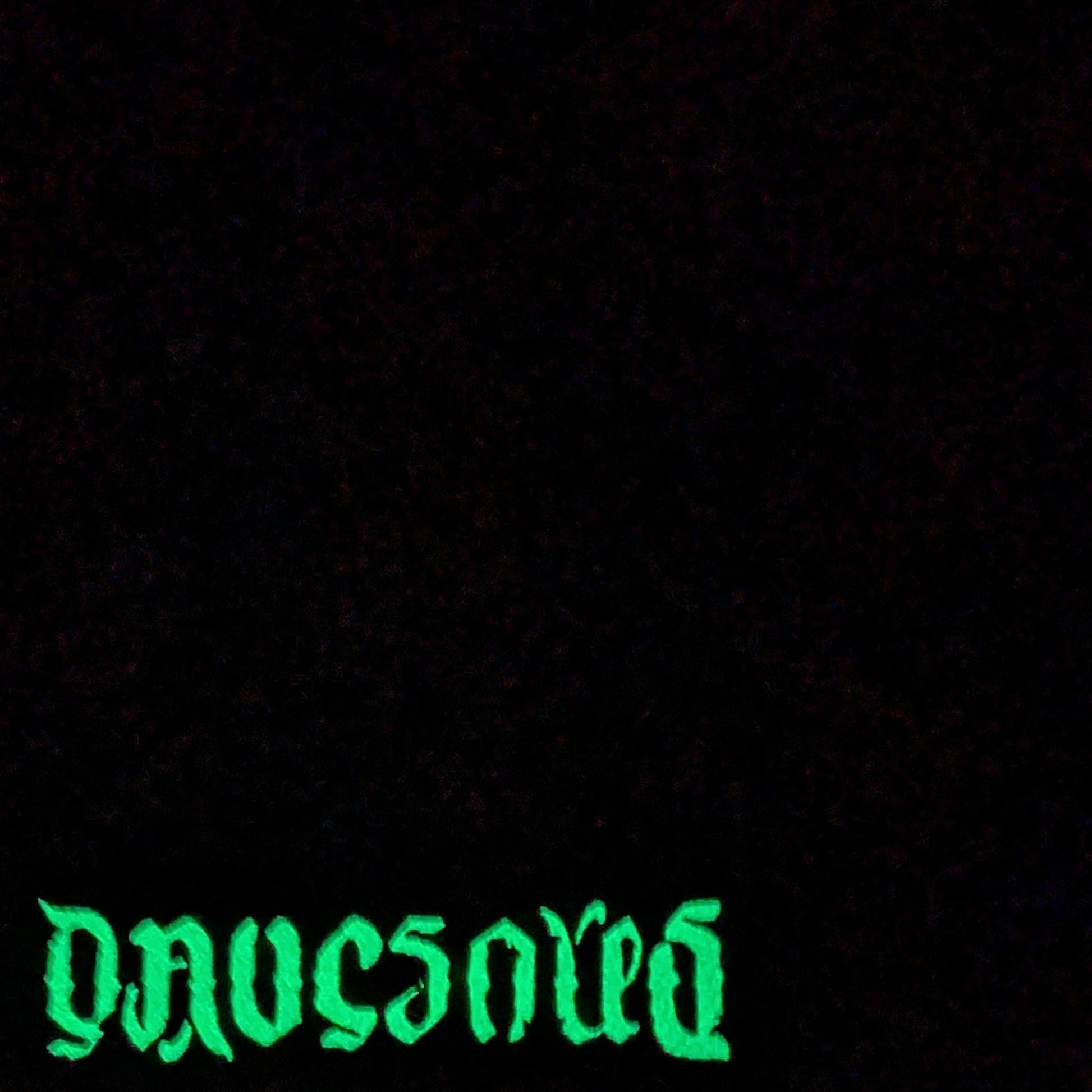 Large UV Reactive Cosmic Egg Front/Back/ Kenney Style Tie Die on a Gildan Ultra Cotton PFD (Prepared for Dye) T-Shirt that was dyed using the "Pariah Method": The item was not presoaked in Soda Ash solution. The Procion Dyes (This piece was dyed, in part, using the only dye that is both UV Reactive and Fiber Reactive. Remazol Luminous Yellow FL AKA Psychedelic Sunshine. A Vinyl Sulfone reactive dye. Great effects in blacklight!) were applied to the tied-up shirt and then a strong soda ash solution was applied after the dye was applied. It was then "batched" as normal for 48 hours before washout. This one has a glow in the dark HTV Dave's Dyes ambigram logo ironed on to the bottom hem. Feel free to ask me any questions you may have. Wash with like colors in cold water for first few washes.