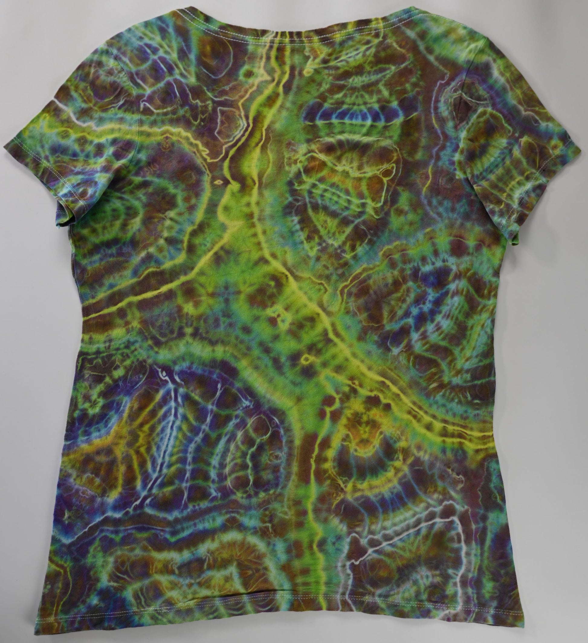 Women's Medium Cosmic Egg/Geode Hybrid Tie Dye on a District Very Important Tee V-Neck Cotton T-Shirt