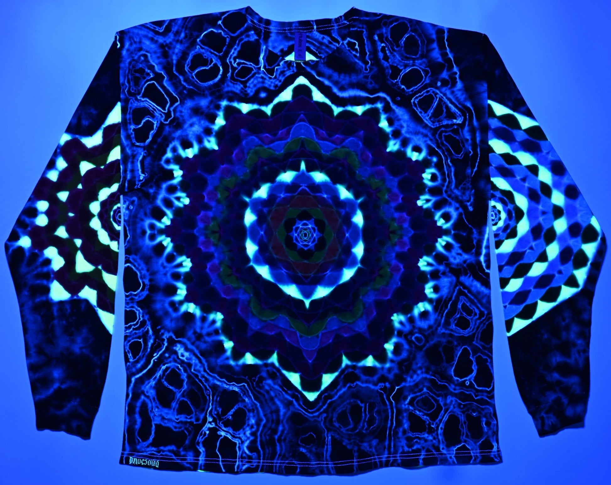 XL Super Heady UV Reactive Hexagon>Dodecagram Frnt/Geometric Tower Bck/Decagram R Slv/Octagon L Slv/Geode +Scrunch Tie Dye Long Slv Shirt